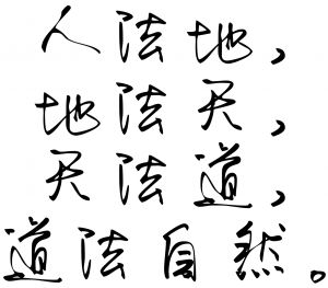 L’homme suit la Terre. La Terre suit le Ciel. Le Ciel suit le Dao. Le Dao suit sa propre nature.