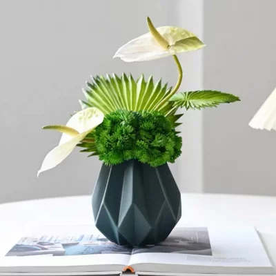 Nos œuvres florales sont réalisées avec des matériaux durables et de qualité (soie, polyester recyclé, latex naturel, bois, métal ou verre recyclés). Elles sont hypoallergéniques car sans pollen ni parfum de synthèse, idéales pour les personnes sensibles. Leur entretien est simple : un léger dépoussiérage au chiffon doux ou à l’air froid, en évitant le soleil direct prolongé et l’humidité excessive.
