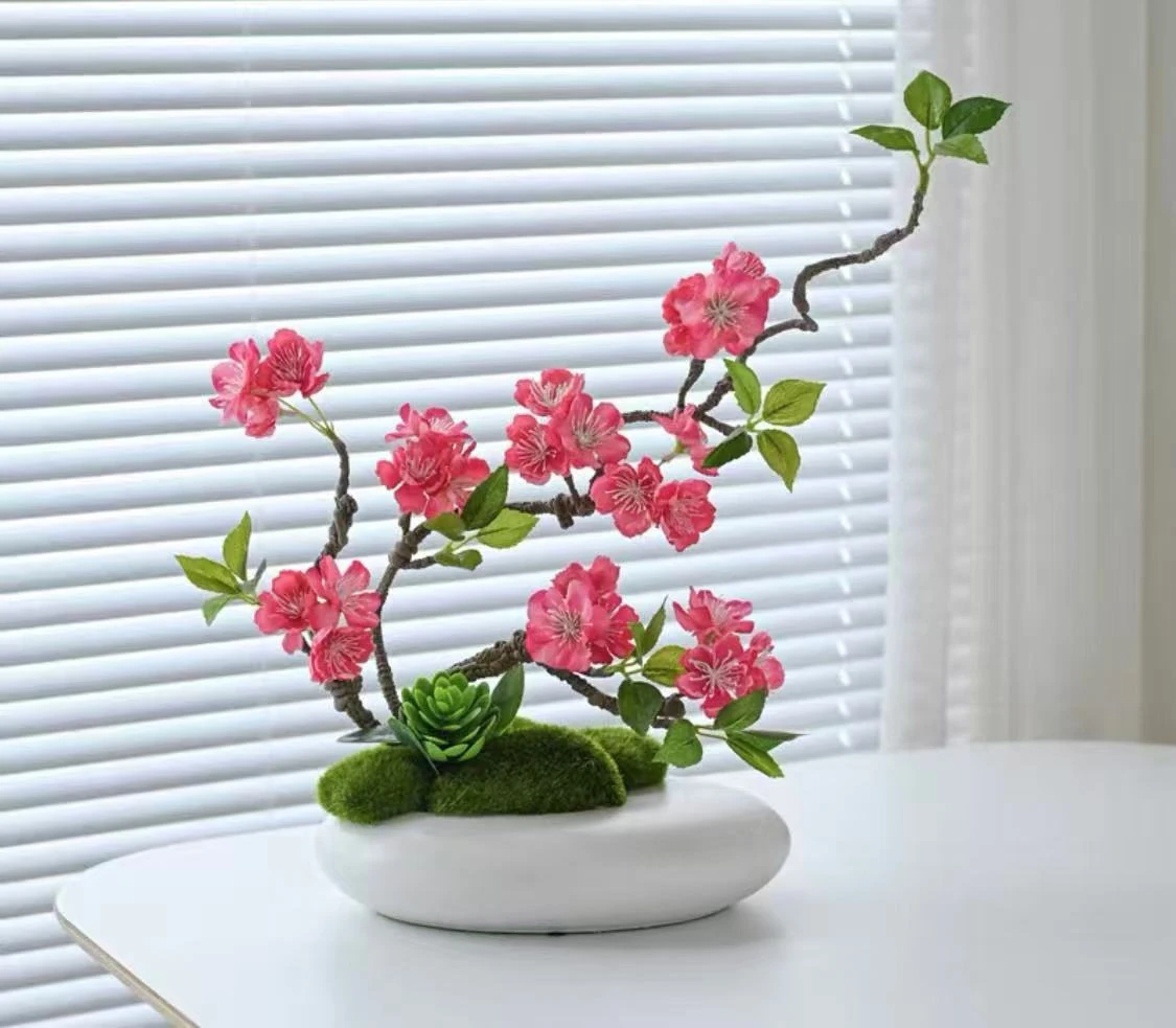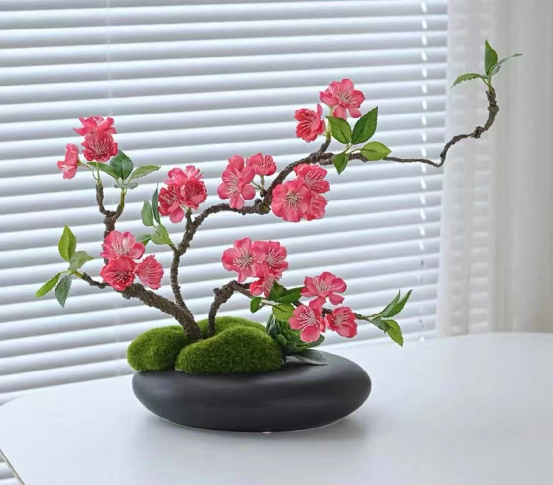 Fleurs de prunier aux couleurs variées – Plat noir ou blanc en céramique – Hauteur 32 cm – Largeur 35 cm