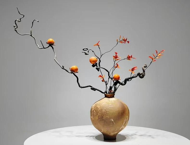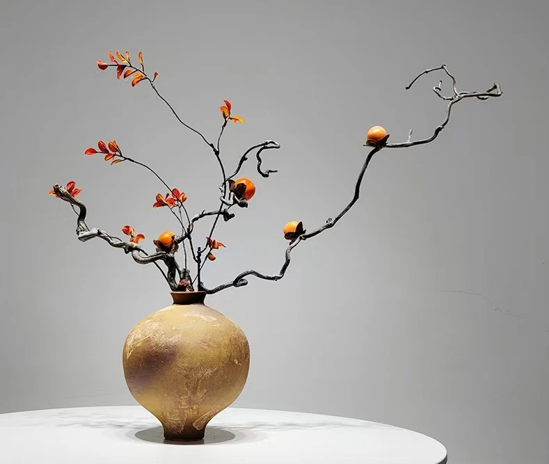 Vase en terre cuite – Branches et feuilles de mandarinier – Largeur 75 cm – Hauteur 65 cm