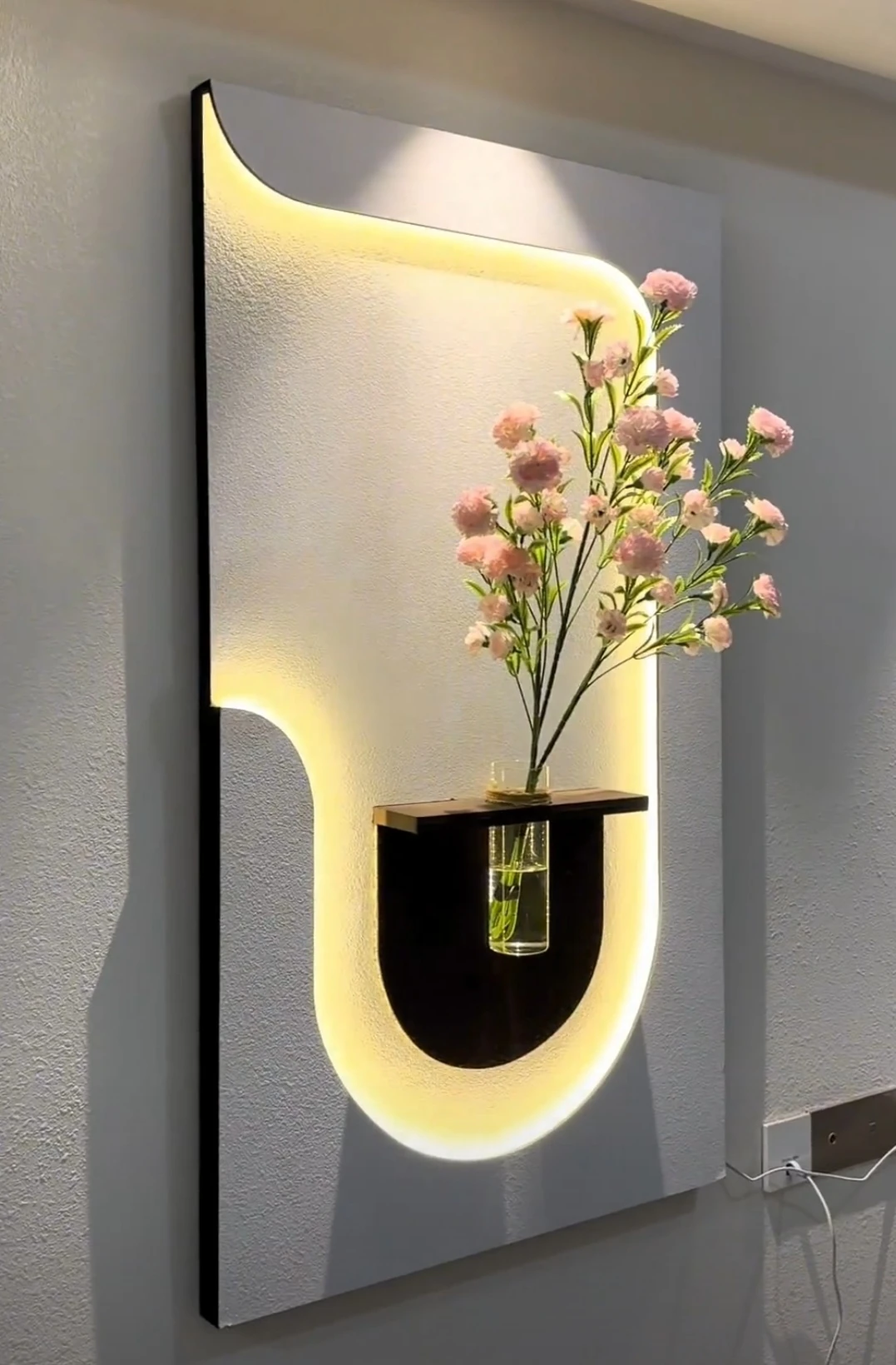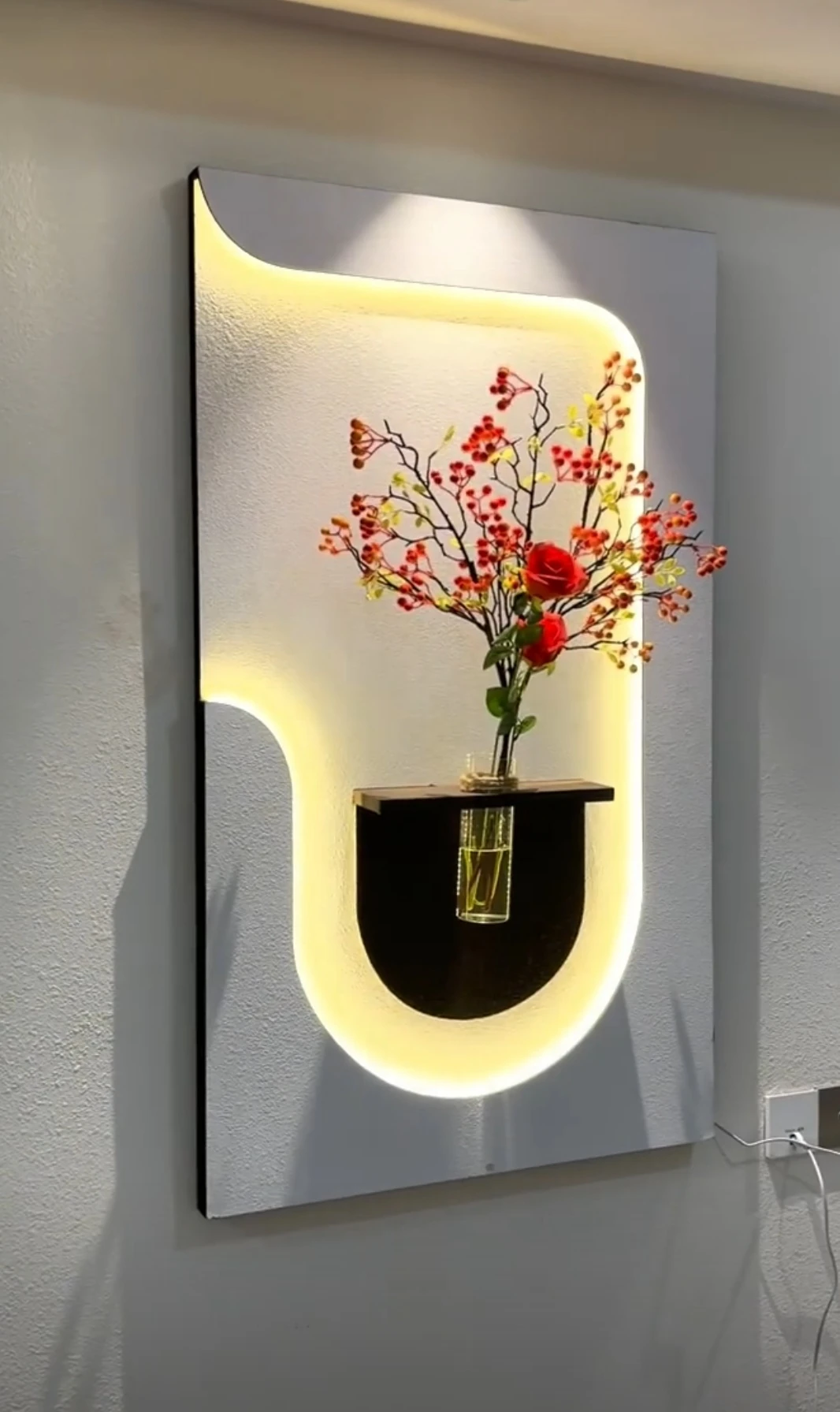 Cadre en résine composite teintée imitation grès – LED 3000K avec mémoire de scénarios à télécommande – Batterie 5000mAh USB-C 45W – Largeur : 40 cm – Hauteur 70 cm – Vase amovible en verre trempé – Couleur : Blanc crème et brun taupe – Support de fixation invisible – Livré avec kit d’ancrage et consignes d’installation en français – Poids : 4,7 kg