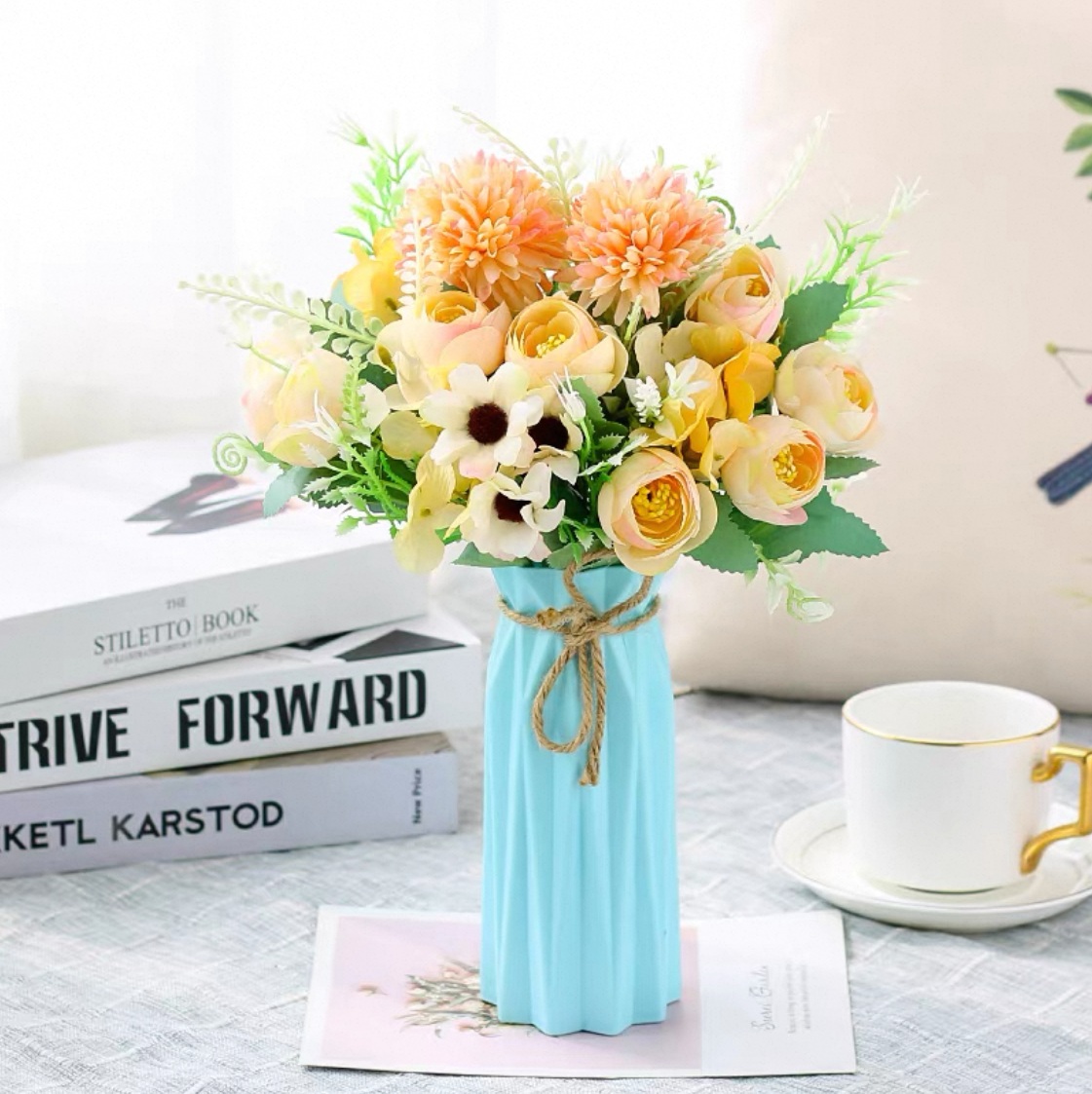 2 bouquets de pivoines – Tons variés – Base porcelaine ou PVC au choix – Hauteur 30 cm – Diamètre 20 cm