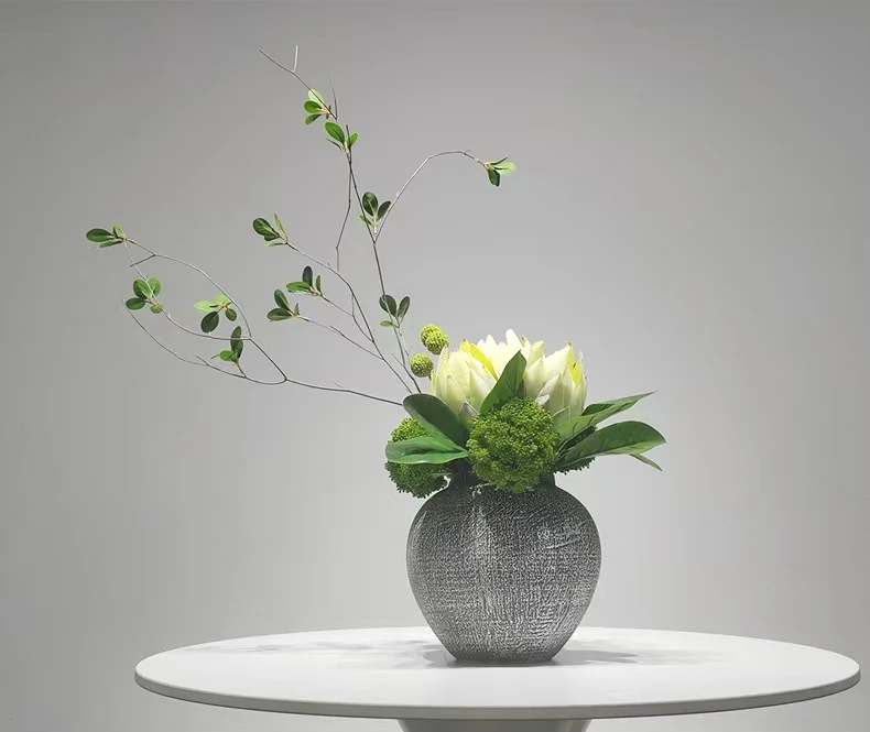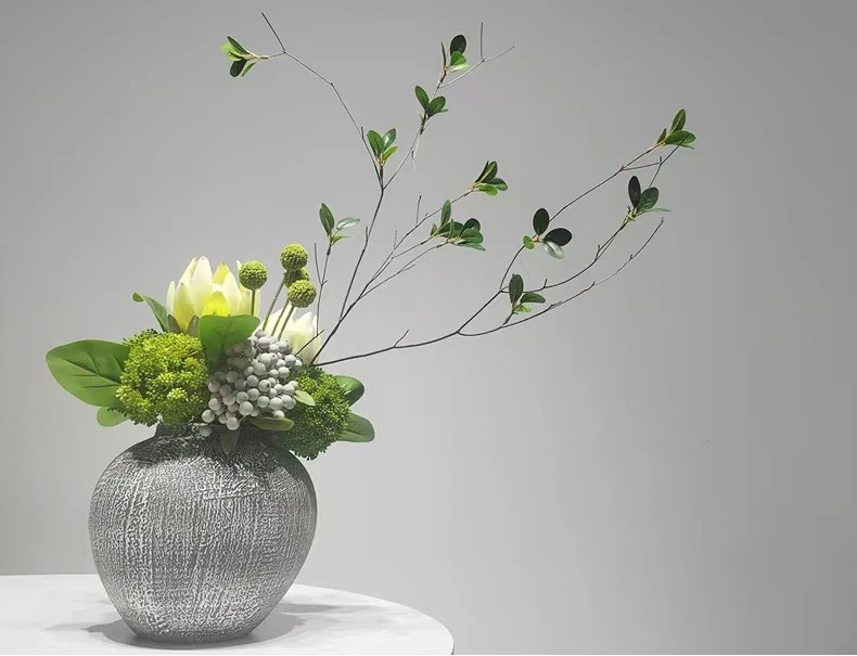 Céramique gris acier – Fleur de lotus et baies – Largeur 65 cm – Hauteur 70 cm