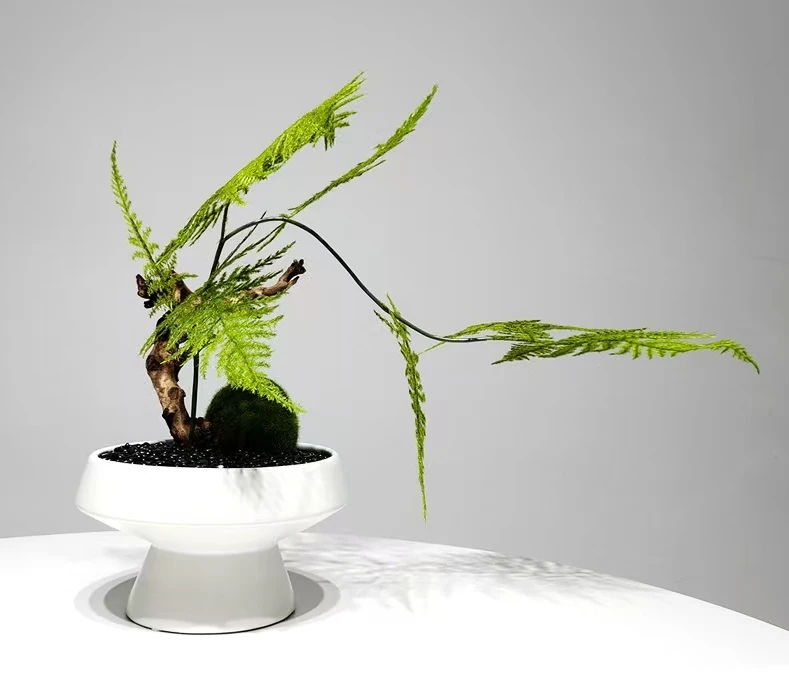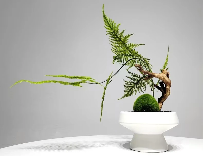 Céramique blanche – Arrangement fougères et souche fait main – Largeur 46 cm – Hauteur 36 cm