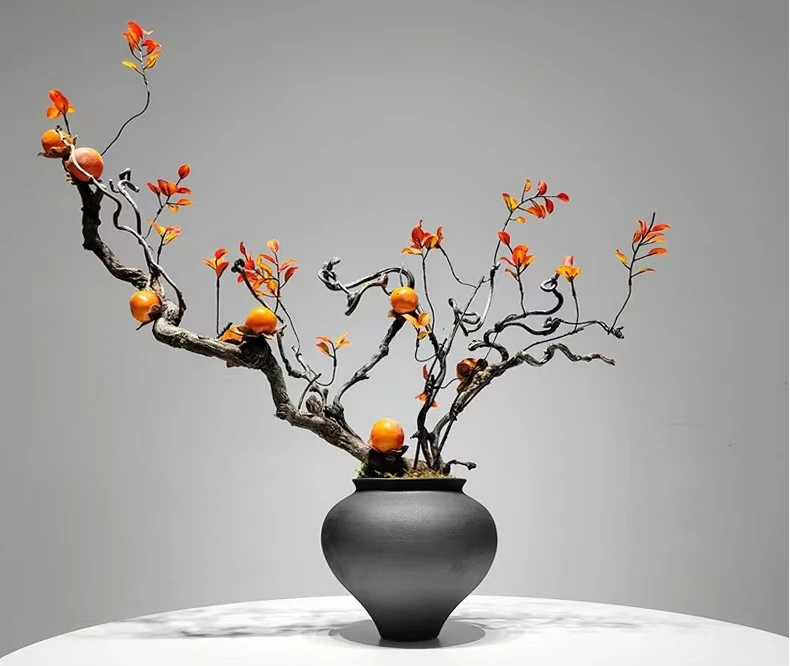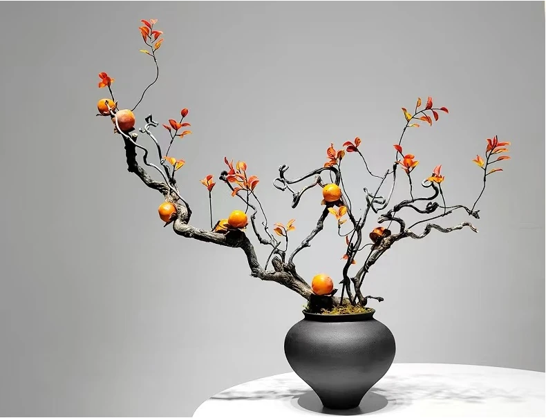 Grès anthracite – Branches et feuilles de mandarinier – Largeur 70 cm – Hauteur 72 cm