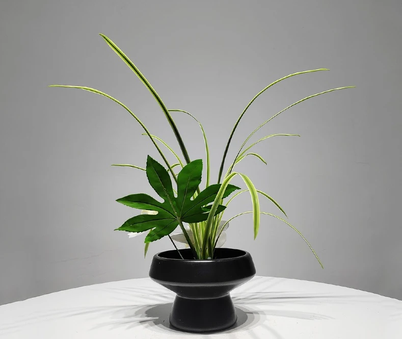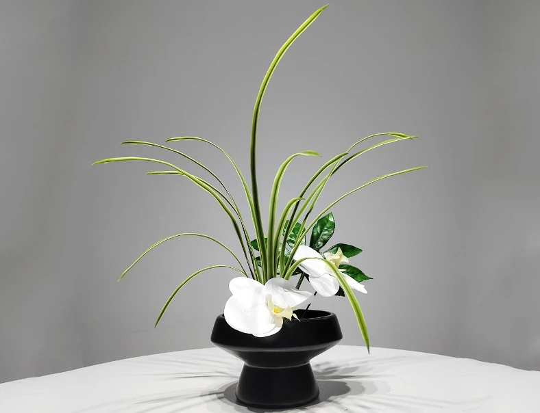 Céramique noire – Assemblage orchidées et feuilles fait à la main – Largeur 40 cm – Hauteur 42 cm