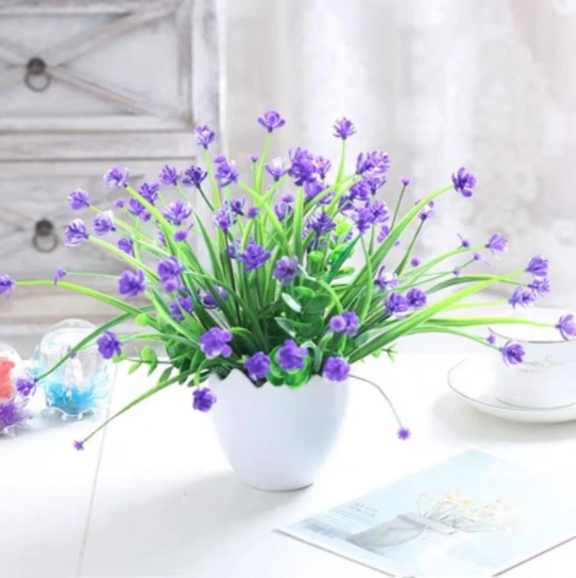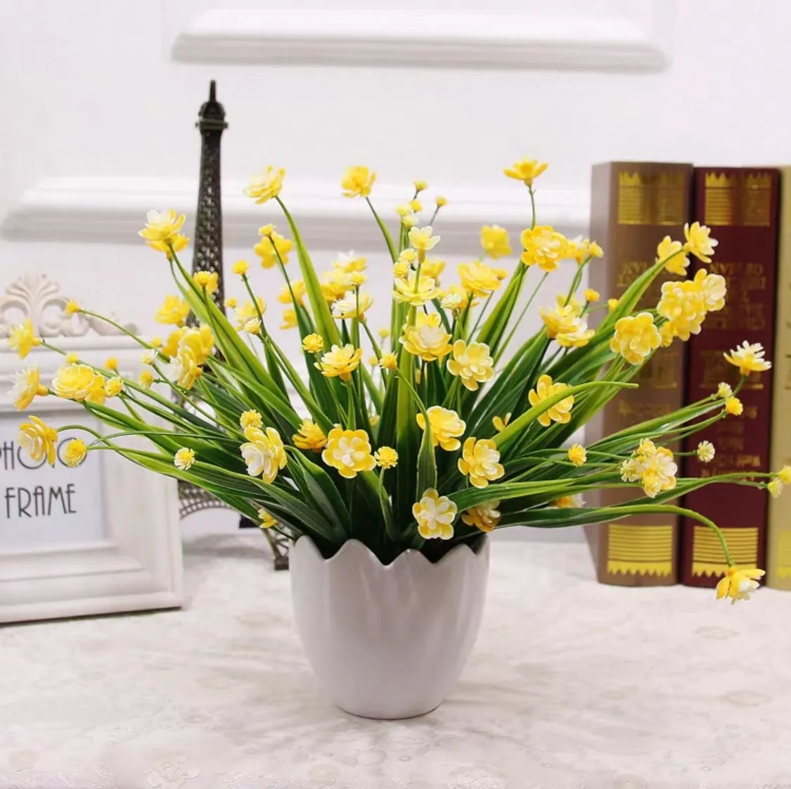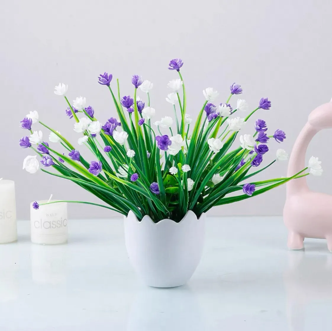 Plante de type iris des marais de qualité – Tons variés – Pot coquille d’œuf blanc