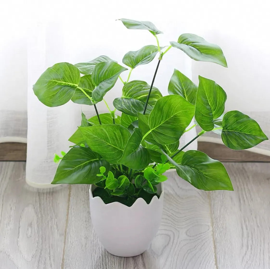 Plante verte artificielle de qualité – Coquille d’œuf et feuilles de monstera