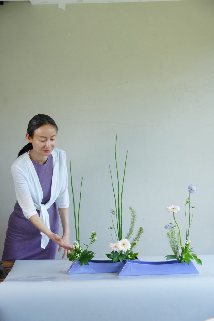 Sa première formation, une maîtrise en pharmacopée traditionnelle obtenue à l’Université de Nanjing, lui a inculqué une connaissance profonde et respectueuse des plantes, de leurs structures et de leurs essences. Cette quête de compréhension du vivant a naturellement évolué vers une expression artistique à travers l’art floral japonais Ikebana, dont elle est devenue Maître, diplômée de l’école Ohara de Tokyo.